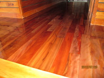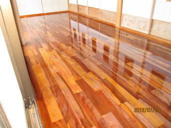 既存の床材が、今となっては大変希少で高価なユスのフローリングだった為、研磨塗装を御提案しました。鏡面みたいな仕上がりに私も大満足です。 |