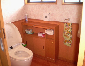 子育て真っ最中の頃は、朝は、家族で競争した様にトイレに入っていたので、トイレが2ケ所有っても足りないくらいでした。今回、定年を迎え、子供も育ち、二人の生活になると、ゆったりとしたトイレが理想。他にも全体的にリフォームしてもらいましが、トイレが一番気に入っています。 |